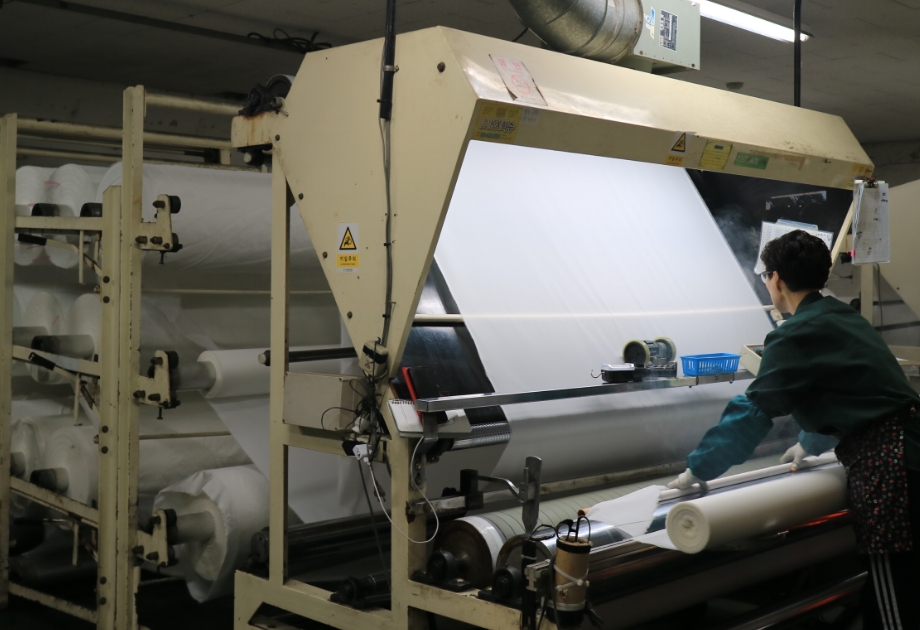 Rolling yarns onto the beams preparing warp yarns suitable for water jet loom
